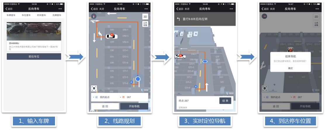 可視化反向?qū)ぼ嚕С职窜嚺铺?、進(jìn)場時間段、無牌車、車位號快速尋車,節(jié)約車主尋車時間;iBeacon(藍(lán)牙)定位系統(tǒng),實(shí)現(xiàn)實(shí)時定位導(dǎo)航尋車,尋車體驗(yàn)更佳。